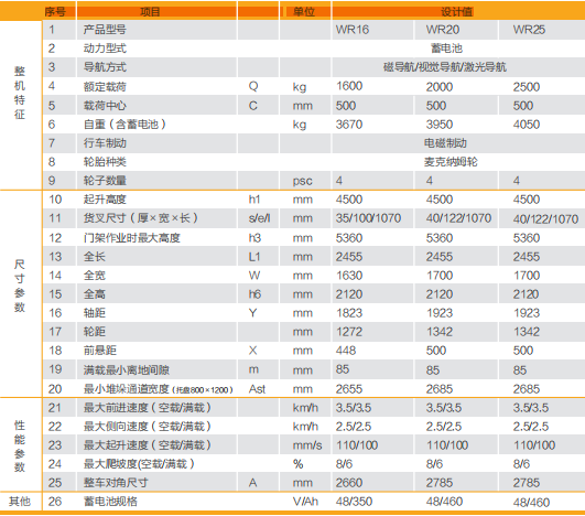 麥克納姆輪全方位任意移動;雙液壓缸前移機構(gòu)門架前移更加穩(wěn)定可靠;搖擺式轉(zhuǎn)向橋,克服地面坑洼不平帶來的影響;搭載激光導(dǎo)航、磁導(dǎo)航、視覺導(dǎo)航等系統(tǒng), 實現(xiàn)智能無人化;手動遙控實現(xiàn)定位精度達(dá)到±0.5mm; 個性化定制起升重量以及堆垛高度;可選裝叉車常用屬具,工作范圍更廣;根據(jù)客戶要求,可選配鉛酸蓄電池或鋰電池;