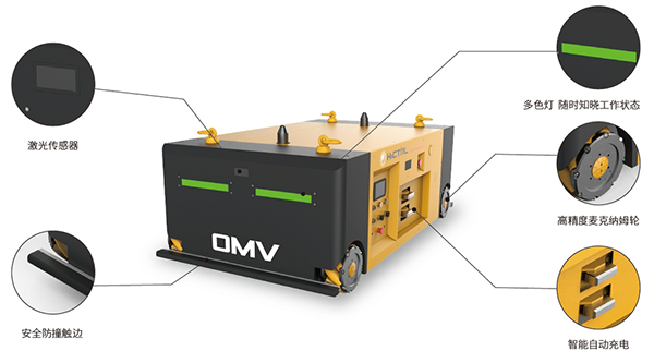 AGV升級換代產品。新一代生產流水線搬運OMV,讓OMV路線更狹窄更精確,獨特的90度側移功能,讓貨物與產線的最后一米無縫銜接。