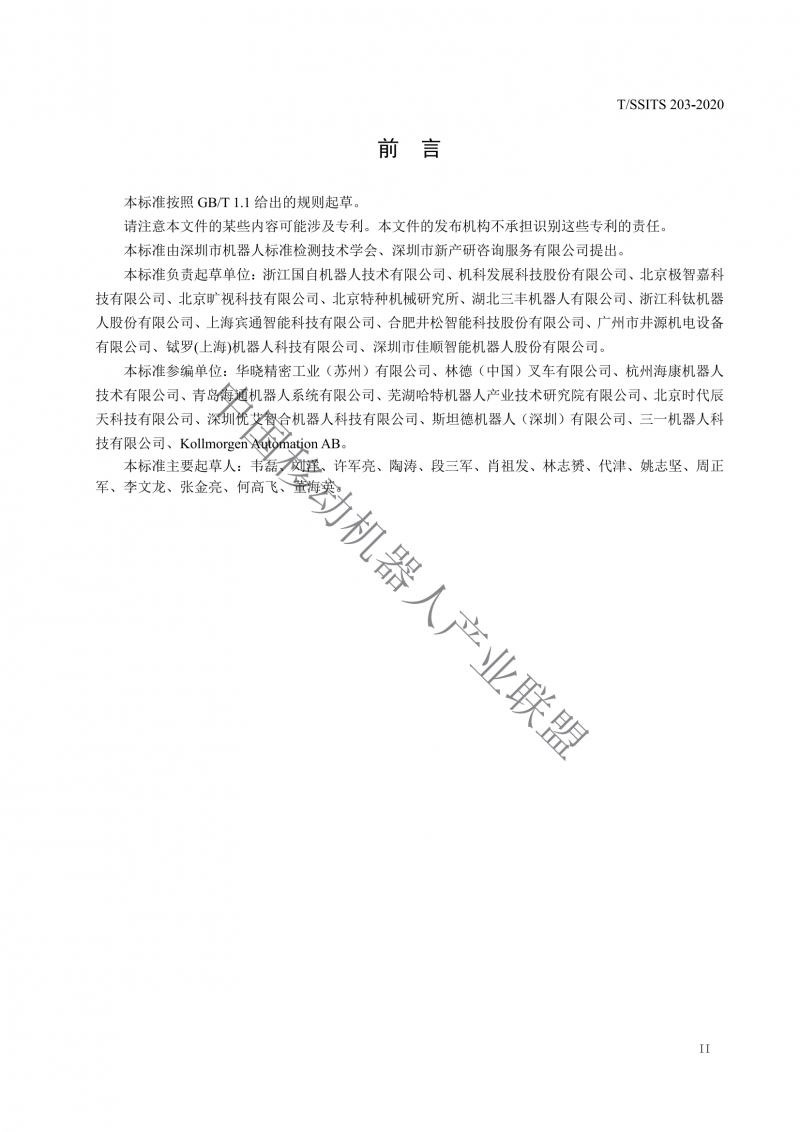 本標準參編單位∶華曉精密工業(蘇州)有限公司、林德中國)叉車有限公司、杭州??禉C器人技術有限公司、青島梅通機器人系統有限公司、蕪湖哈特機器人產業技術研究院有限公司、北京時代辰天科技有限公司、深圳優芝智合機器人科技有限公司、斯坦德機器人(深圳)有限公司、三一機器人科技有限公司、KollmorgenAutomation AB。