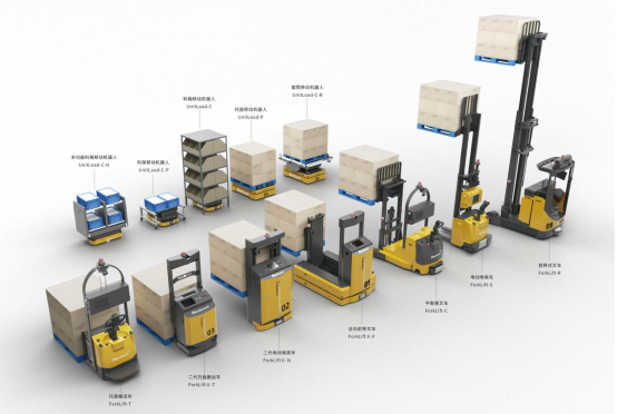 作為全流程智慧物流系統解決方案提供商,蘭劍智能在AGV產品方面也頗有成績,已形成了全向前移AGV、高位前移AGV、電動堆高AGV、托盤搬運AGV、平衡重AGV、托盤/料箱移動AGV等多場景應用的搬運機器人產品家族,且融合了基于激光SLAM的復合導航技術、托盤位置與外形信息檢測技術、基于時間預測機制的AGV調度技術,基于實時更新地圖的AGV定位技術等多種先進技術。
