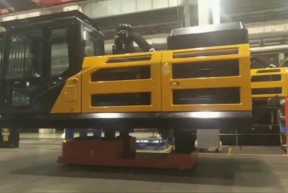 大挖工廠使用國自20噸重載AGV+30噸RGV,串聯起產線裝配工位,實現上線、下線全程智能化調度。