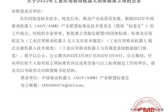 【4.20】《工業(yè)應(yīng)用移動機器人與其調(diào)度系統(tǒng)數(shù)據(jù)的接口規(guī)范》即將發(fā)布!