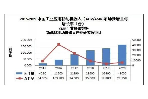 2020年中國工業(yè)應用移動機器人新增量達41000臺,市場規(guī)模達76.8億元
