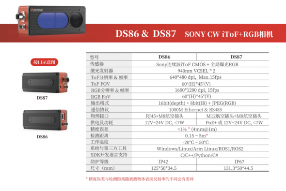 瞄準AGV/AMR領(lǐng)域-維感科技發(fā)布高性價比RGB-D ToF相機DS86/87