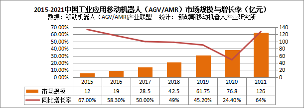 2022年,根據(jù)移動機器人(AGV/AMR)產(chǎn)業(yè)聯(lián)盟數(shù)據(jù)、新戰(zhàn)略移動機器人產(chǎn)業(yè)研究所初步統(tǒng)計,中國移動機器人市場規(guī)模增長預計超過40%。
