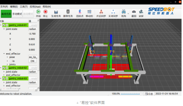 在使用SpeedTruss智能桁架控制器時,用戶只需在軟件中調(diào)用任務(wù)指令接口即可實現(xiàn)相應(yīng)功能,無需進(jìn)行額外的開發(fā)工作,輕松實現(xiàn)多臂桁架機(jī)器人的柔性運動控制。