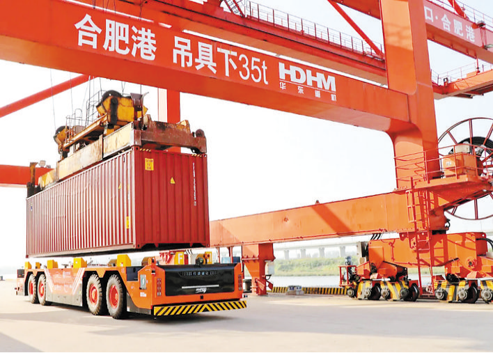 合肥港位于中國安徽省合肥市,地處長江、淮河之間,襟江擁湖,是中國28個內(nèi)河主要港口之一。合肥港目前吞吐能力最大的港區(qū)為南淝河港區(qū),現(xiàn)有58個泊位,其中集裝箱泊位5個,件雜貨泊位13個,危化品泊位6個,通用泊位32個;港區(qū)年吞吐量2490萬噸、集裝箱60萬標(biāo)箱。其中,合肥港綜合碼頭是南淝河港區(qū)最大的件雜貨和集裝箱裝卸碼頭,也是合肥港智能化水平最高的碼頭。配備3臺岸橋全部加裝自動對位系統(tǒng),6臺場橋全部改造為全自動場橋,同時配備了2臺國唐“鴻擎F01”IGV無人駕駛集卡車。2022年,合肥港綜合碼頭集裝箱吞吐量達(dá)42萬標(biāo)箱,2023年計劃吞吐量達(dá)45萬標(biāo)箱。