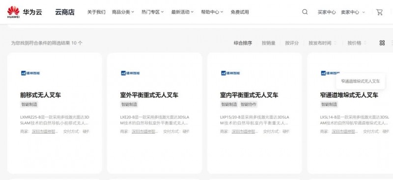 鐳神智能陸續(xù)將無人叉車系列產(chǎn)品、高性能激光雷達及行業(yè)應用解決方案上傳至商城,無論是企業(yè)用戶還是個人用戶,均可通過華為云商城享受到便捷的購買體驗,同質的售后服務及技術支持。