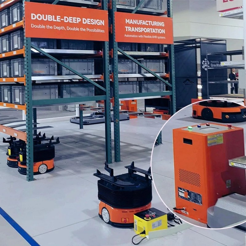 合作伙伴也攜帶了泰坦智能充電機去到展會,給新能源工業(yè)車輛以及移動機器人進(jìn)行充電。