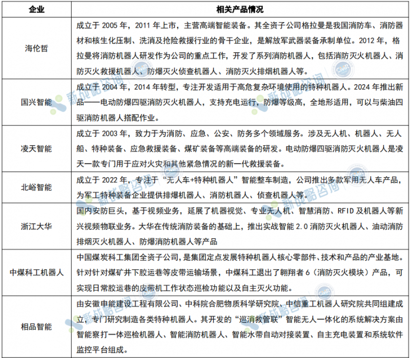 中國市場的大部分消防機器人企業,主要可以分為兩大類,一類是綜合性特種裝備企業,致力于開發各種特種裝備,消防機器人是其產品線之一,這類企業通過規模較大,具備雄厚的資金實力;二是專業型消防機器人企業,這類企業專注于消防機器人的研發和生產,一般成立時間較短,但具有較強的創新能力和市場敏銳度。