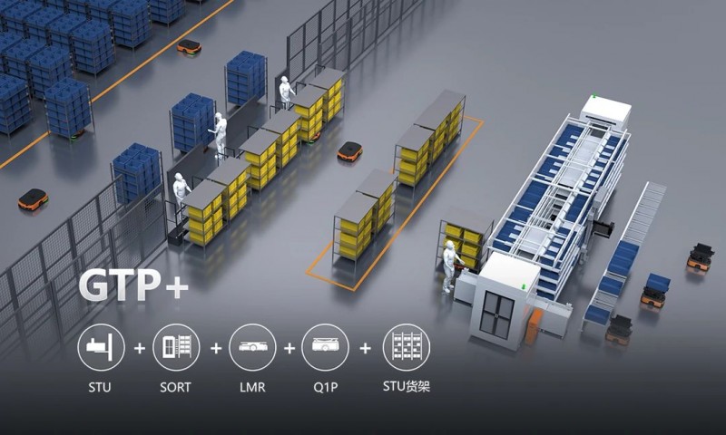 GTP+方案由GTP(Goods to Person,貨架到人方案)總揀、SORT自動(dòng)分播、對(duì)接STU空滿箱交換、Q1P空滿箱轉(zhuǎn)運(yùn)構(gòu)成,適用于醫(yī)藥樓層庫(kù)混合拆零揀選場(chǎng)景。