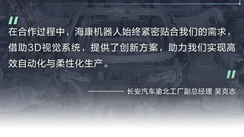 為實(shí)現(xiàn)柔性、高效的自動(dòng)化生產(chǎn),長安汽車引入了海康機(jī)器人3D視覺引導(dǎo)系統(tǒng),通過3D AI視覺技術(shù)與汽車生產(chǎn)制造工藝相結(jié)合,引導(dǎo)機(jī)器人完成沖壓車間尾線裝箱以及焊裝車間焊裝上料等工序。