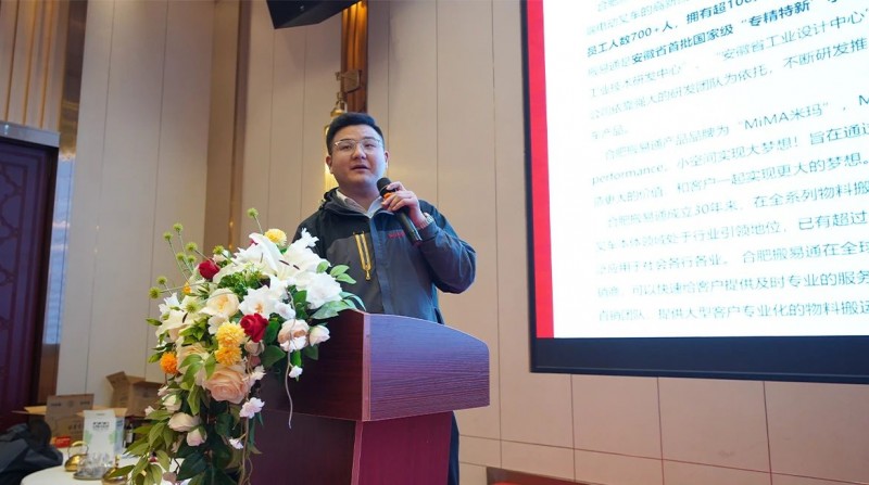 在酒店宣講環(huán)節(jié),合肥搬易通廣州營(yíng)銷服務(wù)中心負(fù)責(zé)人侯杰介紹了公司的企業(yè)規(guī)模、發(fā)展歷程、全系列物料搬運(yùn)設(shè)備以及超窄通道產(chǎn)品,并表明未來(lái)團(tuán)隊(duì)將不斷深化對(duì)市場(chǎng)動(dòng)態(tài)與客戶需求的洞察,提升服務(wù)質(zhì)量,力求全方位滿足客戶物料搬運(yùn)需求。