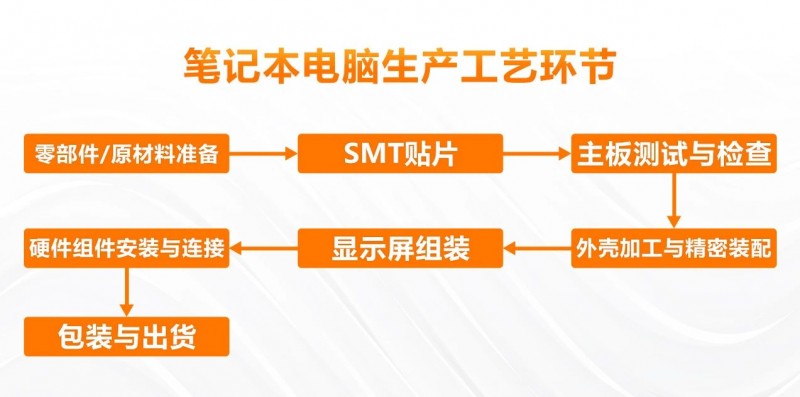 在零部件及原材料準備環節中,需要準備好相關組件:如主板、顯示屏、鍵盤、電池、外殼和內部結構件等,這些元器件通常由不同的供應商提供。
