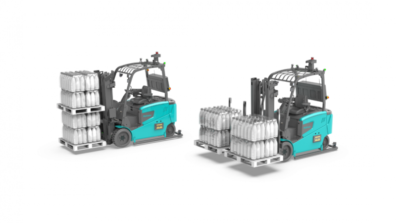 E系列平衡重式無人叉車可選配頂部或左右載荷穩定器,適用于較高的貨物以及松散易掉落的貨物搬運場景,確保搬運過程安全高效,降低貨物損壞風險
