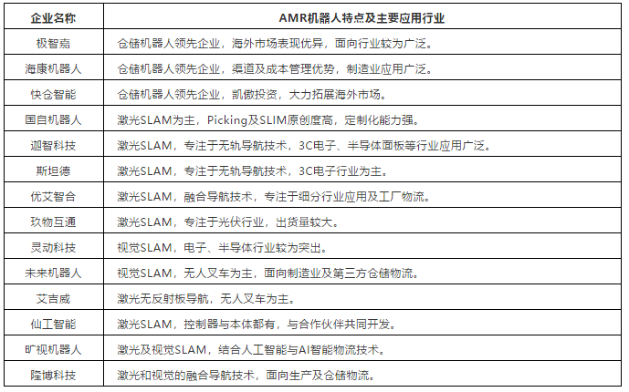 圖表2:國內(nèi)市場主要做AMR機器人的企業(yè)(部分代表)
