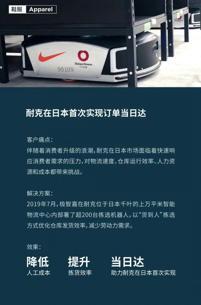 作為在鞋服行業(yè)擁有深厚行業(yè)積淀的智能物流方案專家,極智嘉已成功賦能耐克、安踏等行業(yè)龍頭品牌,實(shí)現(xiàn)物流智能升級(jí),不斷助力客戶以數(shù)字化、精細(xì)化的倉配運(yùn)營管理,連接碎片化、多邊化場景,提升消費(fèi)者購物體驗(yàn)。