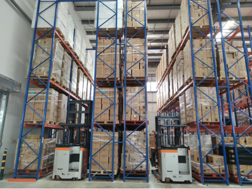 優(yōu)異的性能使得VDA116三向叉車自推出以來就受到了眾多用戶的青睞。某食品配送公司,每天有大量的物料需要進出倉庫,之前都是采用地堆的方式存儲。隨著公司業(yè)務(wù)的不斷擴大,原本的存儲方式已經(jīng)不能滿足他們現(xiàn)有的業(yè)務(wù)需求。只有將物料上貨架,在不改變現(xiàn)有倉儲面積的情況下,可以增加庫位。可是如果采用傳統(tǒng)貨架堆垛方式,在庫位的增加上并沒有很大的優(yōu)勢,未來業(yè)務(wù)再擴張后,還將面臨儲位不足的問題。客戶多方比較后決定采用卓一的三向堆垛車來改造現(xiàn)在的倉庫。