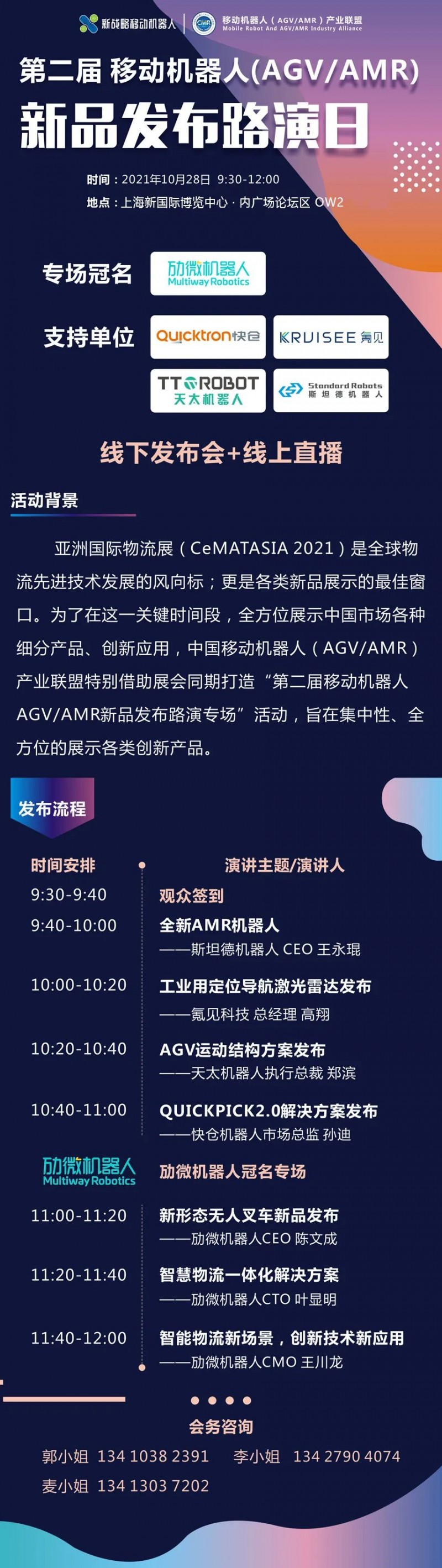核心提示:兼聽則明、博采眾長、廣開言路、群策群力。10月27-28日,上海CeMAT物流展現場,中國移動機器人(AGV/AMR)產業聯盟主辦第四屆國際移動機器人(AGV/AMR)大會+第二屆AGV/AMR新品發布路演專場+2021工業移動機器人專精特新小巨人成長專場。