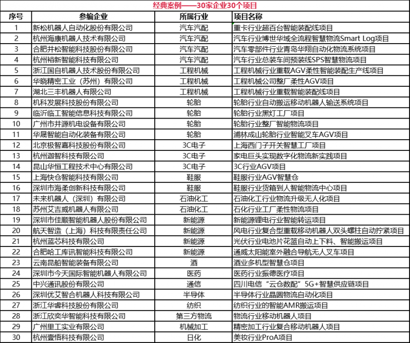 為了更好的宣導(dǎo)和展示從91年國(guó)產(chǎn)AGV落地應(yīng)用以來(lái)在各行各業(yè)的經(jīng)典案例,以及將案例與技術(shù)相結(jié)合,凸顯行業(yè)前瞻技術(shù)的論文集萃。中國(guó)移動(dòng)機(jī)器人(AGV/AMR)產(chǎn)業(yè)聯(lián)盟與新戰(zhàn)略移動(dòng)機(jī)器人產(chǎn)業(yè)研究所聯(lián)合出版了《中國(guó)工業(yè)應(yīng)用移動(dòng)機(jī)器人經(jīng)典案例匯編及技術(shù)發(fā)展論文集(2021版)》。具體入選案例名錄如下: