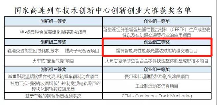 鐳神智能以高性能激光雷達賦能軌道交通項目榮膺該創(chuàng)新創(chuàng)業(yè)大賽的創(chuàng)業(yè)組二等獎。